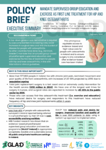 Click here to view the policy brief to mandate for programmes like GLA:D to be offered as first line treatments for people with hip and knee osteoarthritis in Ireland.